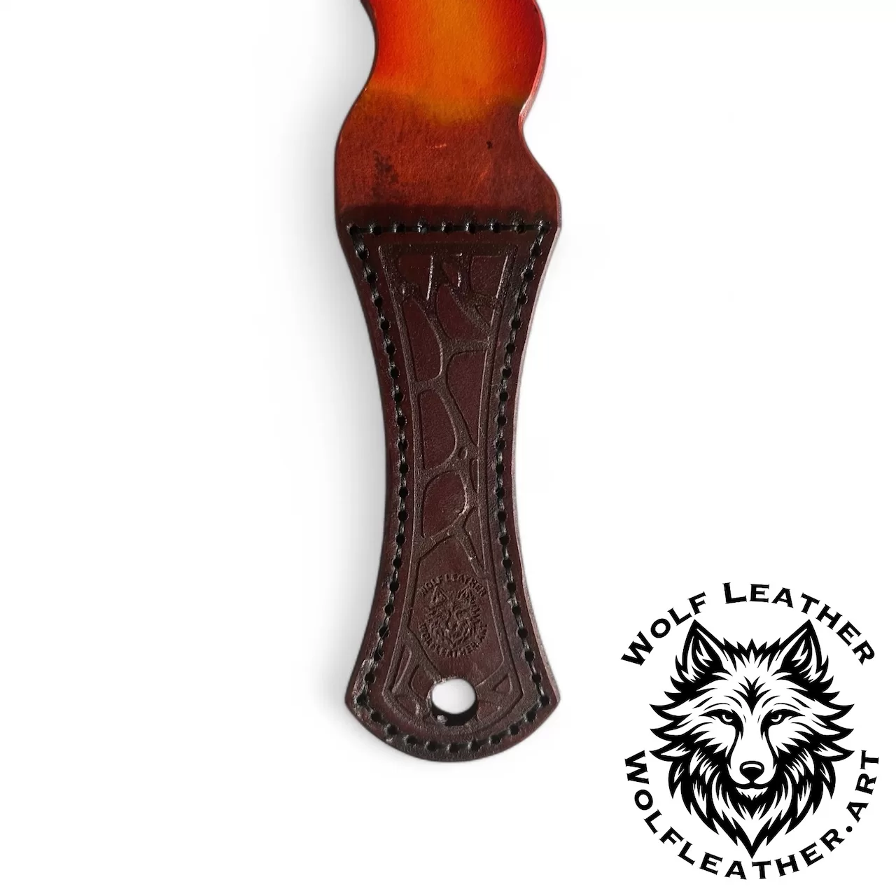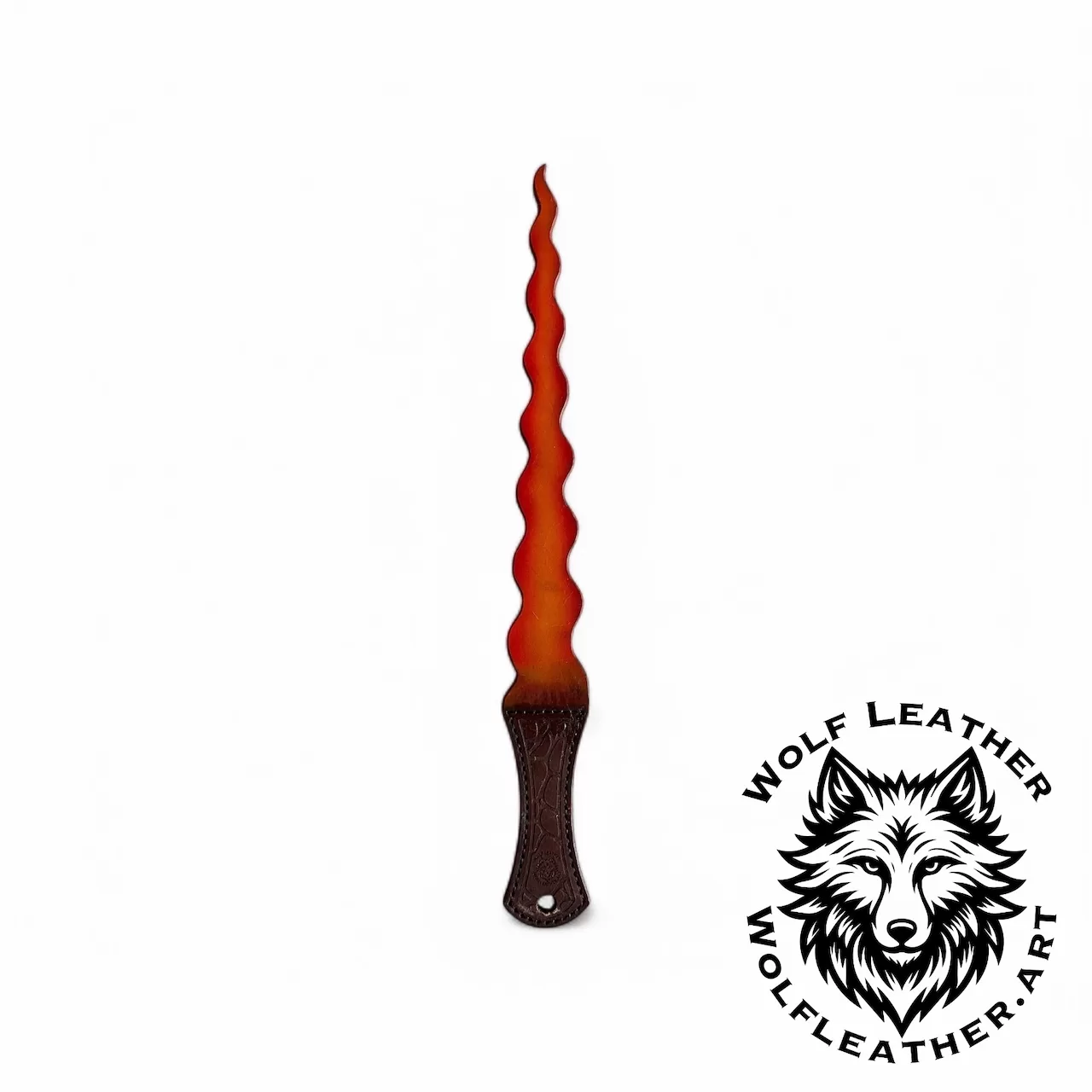 Kožená plácačka „Očistný plamen“ je BDSM nástroj pro dominanty, kteří hledají maximální intenzitu, precizní kontrolu a nezapomenutelný prožitek při každém sezení. Vyrobena z hovězí kůže o celkové tloušťce 8 mm, tato spanking plácačka kombinuje surovost materiálu s promyšleným designem ve tvaru plamene – každý dopad se šíří jako vlna žhavého tepla a zanechává na pokožce otisk, který mluví za vše. Airbrush zpracování povrchu dává plácačce estetiku hodnou skutečného mistrovského kousku. Nástroj pro zkušeného domina, který ví, co chce – a chce to cítit.