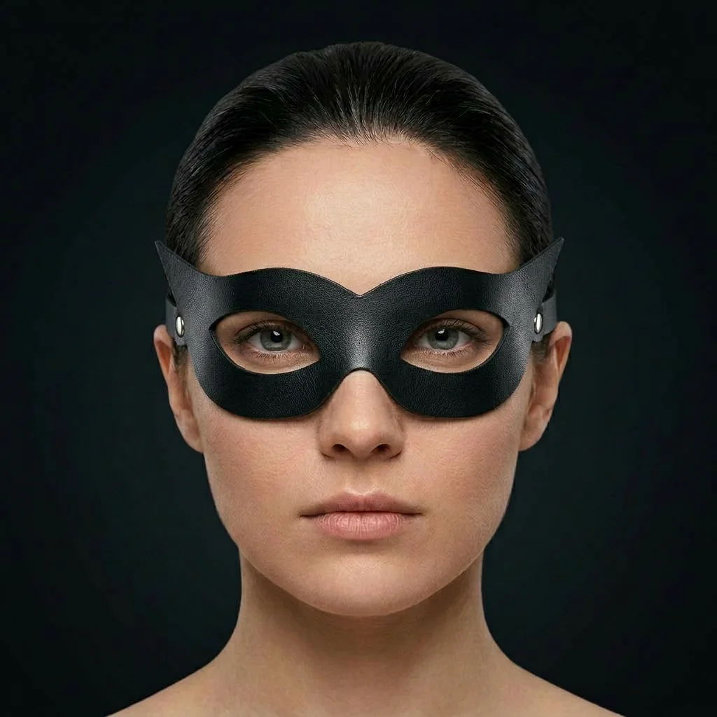 Das Scrunchie ist um die Augen herum so geformt, dass der Blick völlig frei bleibt, während die obere Linie in einem sanften Bogen in der Mitte ansteigt und an den Seiten leicht ansteigt. Es wirkt weicher als die schärferen Katzenversionen, behält aber dennoch einen unverwechselbaren Charakter. Das 1,5-2 mm dicke Kalbsleder ist leicht, bequem und passt sich gut an das Gesicht an, während der elastische Sitz um den Kopf herum für einen bequemen und stabilen Sitz sorgt.