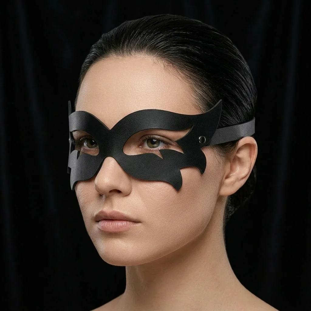 Der Schaber hat eine subtile Formgebung - die Seitenkanten laufen nach außen und unten in spitzere Spitzen aus und verleihen ihm ein fast geflügeltes, ornamentales Aussehen. Die Bullaugen sind vollständig geöffnet und ihre Form folgt natürlich der Gesamtdynamik der Maske. Das 1,5-2 mm dicke Kalbsleder sorgt dafür, dass die Maske trotz ihrer komplexen Form leicht und bequem bleibt. Ein Gummizug um den Kopf herum sorgt dafür, dass der Schaber auch in Bewegung sicher sitzt.