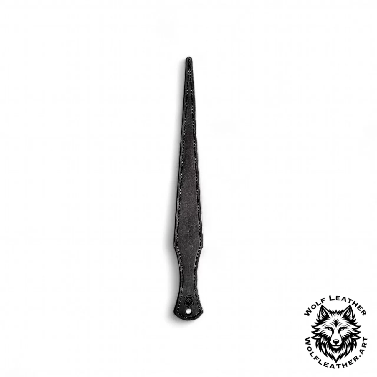 This spanking is not for the faint of heart. Two layers of tough leather, approximately 8 mm thick in total, hand-stitched along its entire length, create a tool that looks stealthy but acts like a predatory beast. Its shape tapers from about 4 cm at the handle to just 1 cm at the tip - and therein lies its destructive potential.