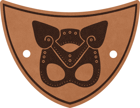 Kožená spona Deluxe Maska kočka 1 – kočičí půvab s nádechem vzdoru ve velkém formátu. Symetrická kočičí maska s výraznými ušima, spirálovými ozdobami a nýty laserově vypálená do prémiové hovězí kůže ve štítovém tvaru Deluxe spony pro ty, kdo svou kitty stránku přiznávají s elegancí.