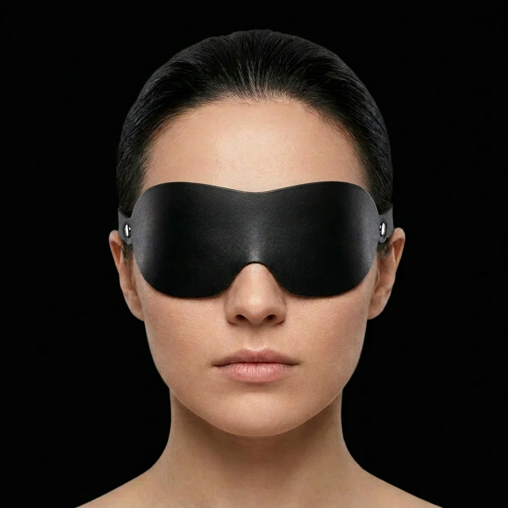 Leather eye mask 2 - clean, smooth and absolutely straightforward. The minimalist calfskin mask covers the eyes in full width and relies on a simple shape without distracting details.
