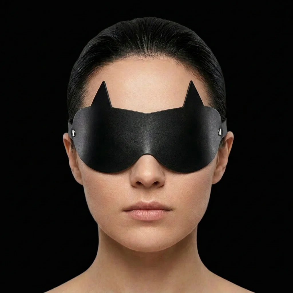 Leather eye mask 7 - pure variant with horns. The smooth base is complemented by a pair of higher tips that give the mask a playful but still austere character.
