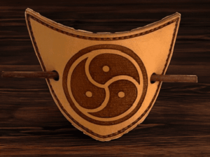Štítový tvar Deluxe spony o velikosti 13 × 10 cm z prémiové 3mm hovězí kůže nabízí plátno pro jakýkoliv motiv, který si zvolíš – vlastní kresbu, logo, iniciály, symbol, portrét, nebo cokoliv jiného, co chceš nosit ve vlasech. Laserová gravírka zachytí i jemné detaily s precizností a trvalostí, která vydrží léta. Tmavě hnědý okraj lze volitelně prošít strojově nebo ručně, upevnění obstarává francouzské zapínání nebo bambusová jehlice o délce 15 cm.