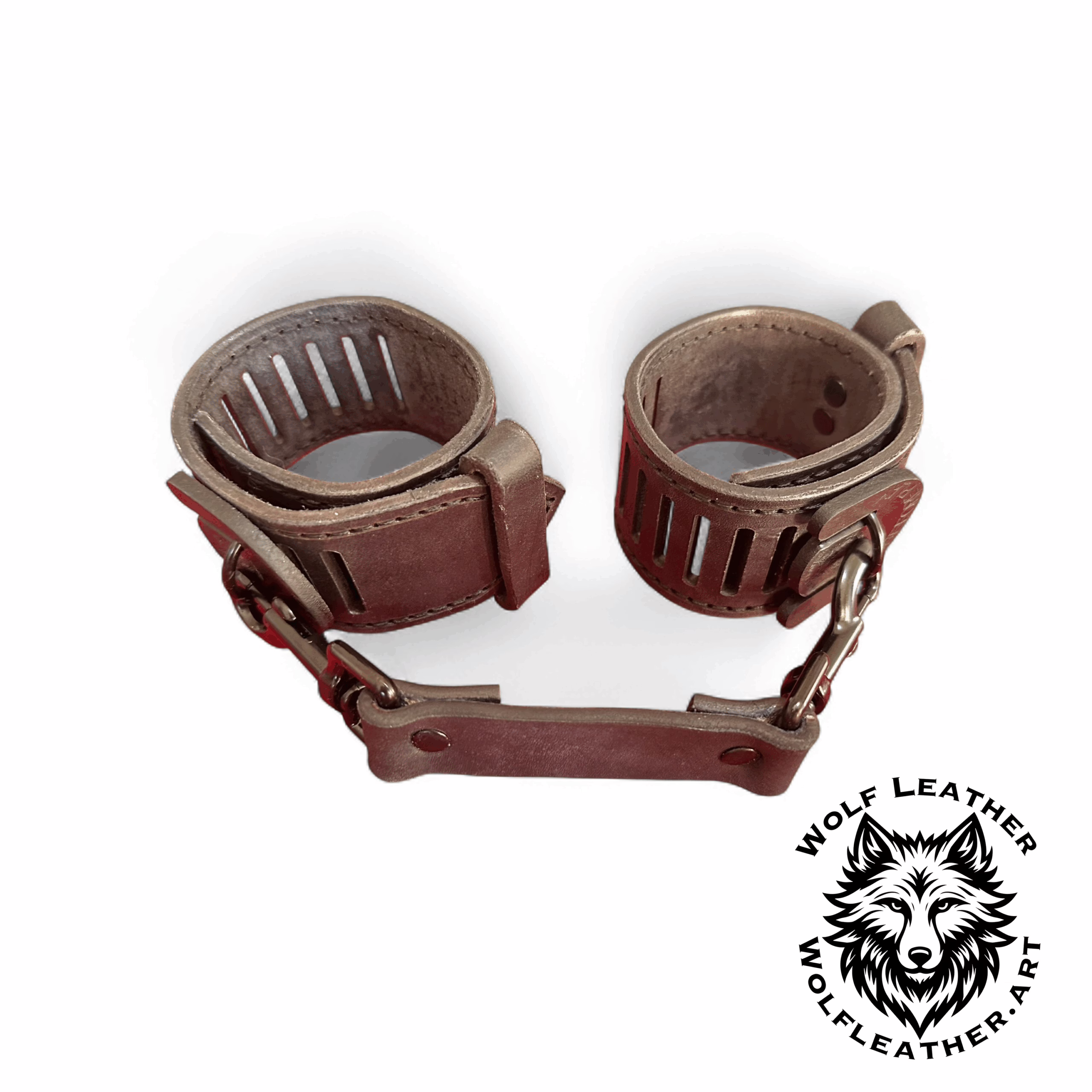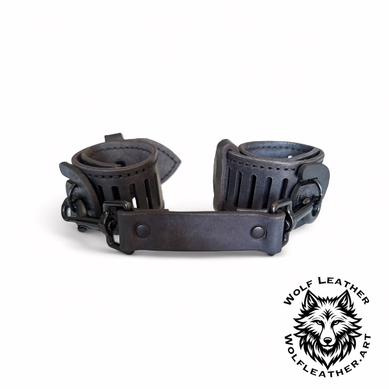 Pokud hledáte nástroj, který dodá intenzitu a absolutní kontrolu, jsou to právě pouta na nohy z této řady. Vyrobená z přibližně 4 mm silné hovězí kůže, široká 5 cm a ručně prošitá, aby vydržela jakékoliv zatížení.