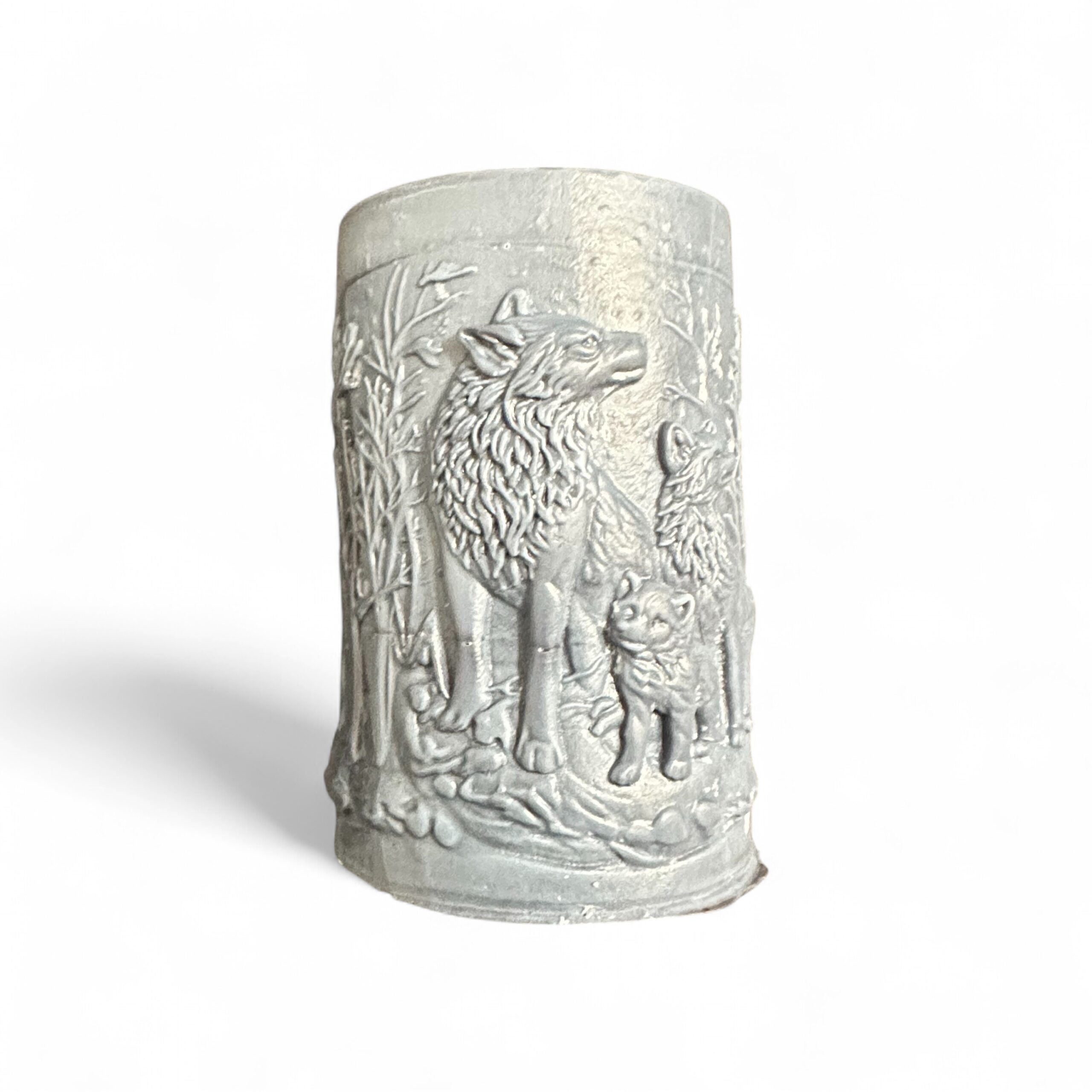 Svíčka Vlčí rodinka – síla, soudržnost a ochranitelský instinkt zachycené v detailním reliéfu vlků v lesním prostředí. Nejen svíčka, ale dekorační kousek s příběhem, který vynikne zapálený i nezapálený.